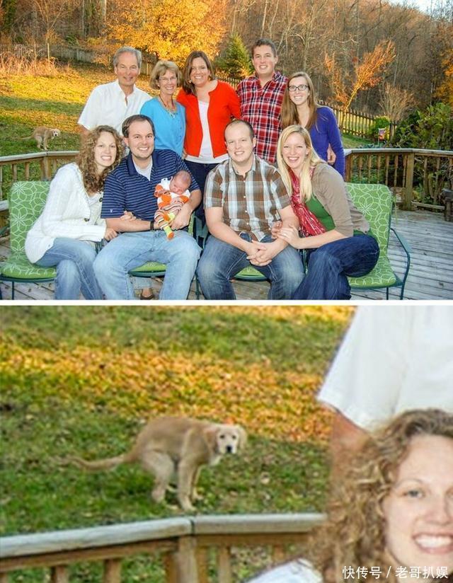 10.“今天拍全家圣诞照,结果狗子硬要入镜。”
