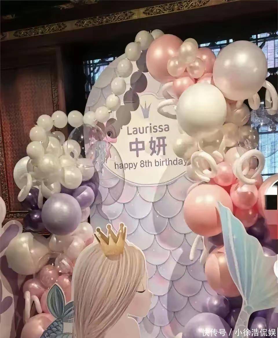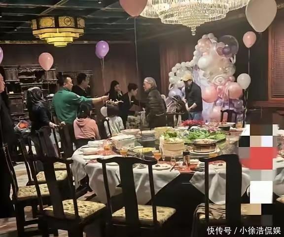 这场生日宴选在有近500年历史的风临阁,包厢里布置着美人鱼主题的气球和专属生日牌,满是孩子喜欢的童趣,却没有一丝豪门的奢华感。宴席上不过一桌家常风味的菜,饮品也只是孩子们爱喝的果汁,和普通家庭给孩子庆生的场景别无二致。